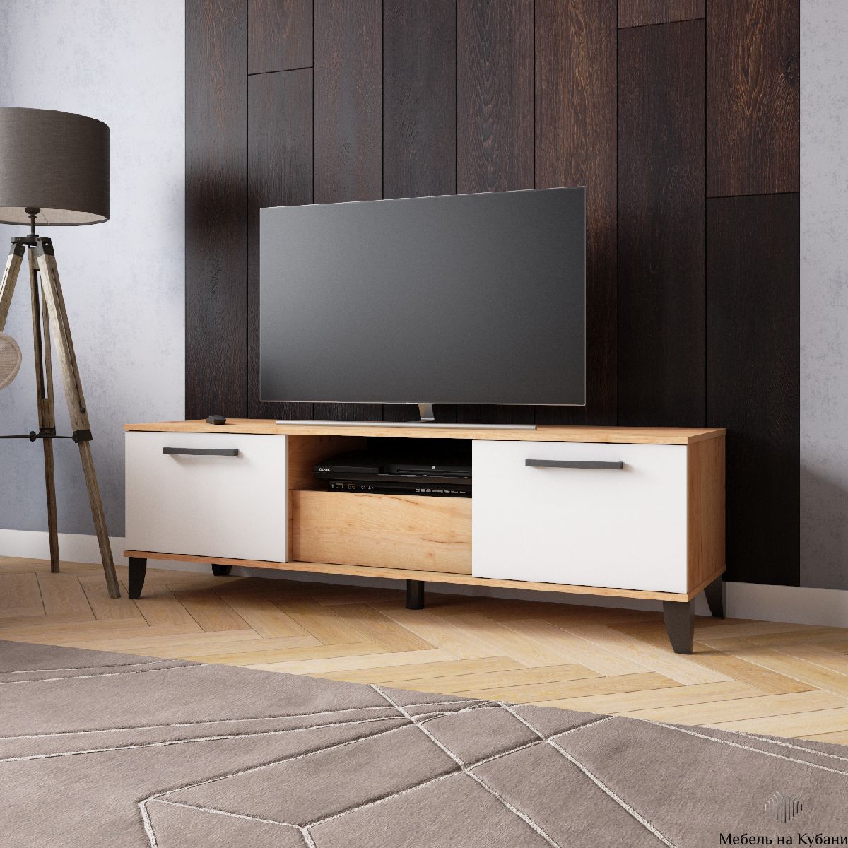 ТВМ-2 Тумба под ТВ Дуб крафт золотой/Белый с тиснением
