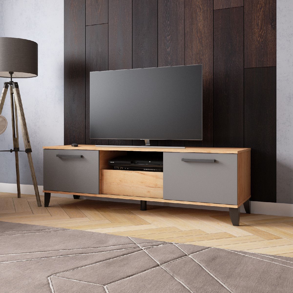 ТВМ-2 Тумба под ТВ Дуб крафт золотой/Графит Серый