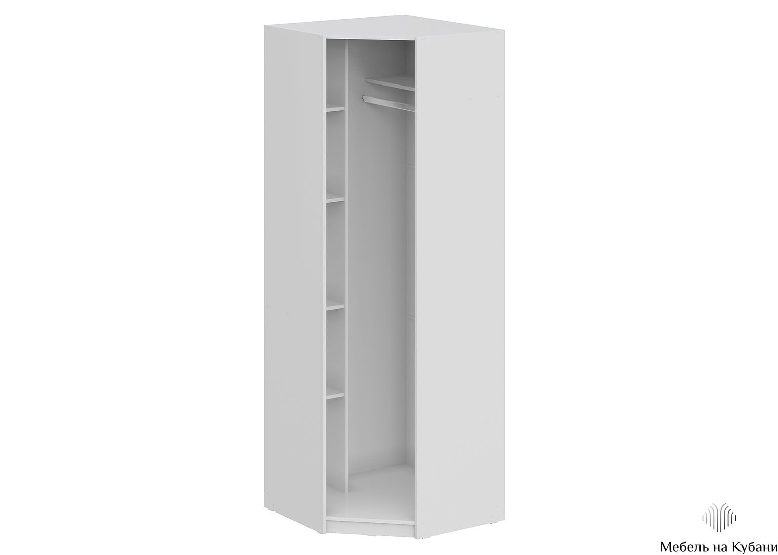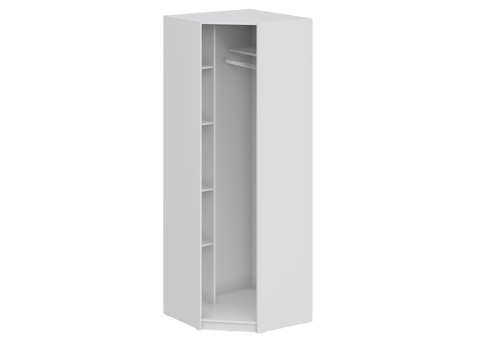 Шкаф угловой «ШК 5» Белый — это воплощение лаконичного стиля. Его строгие формы и сдержанные цвета гармонично впишутся в любой современный интерьер. Благодаря продуманной внутренней конструкции, включающей стационарную хромированную штангу и полки, в шкафу можно удобно разместить одежду, бельё и аксессуары. При этом пространство комнаты используется максимально эффективно.
