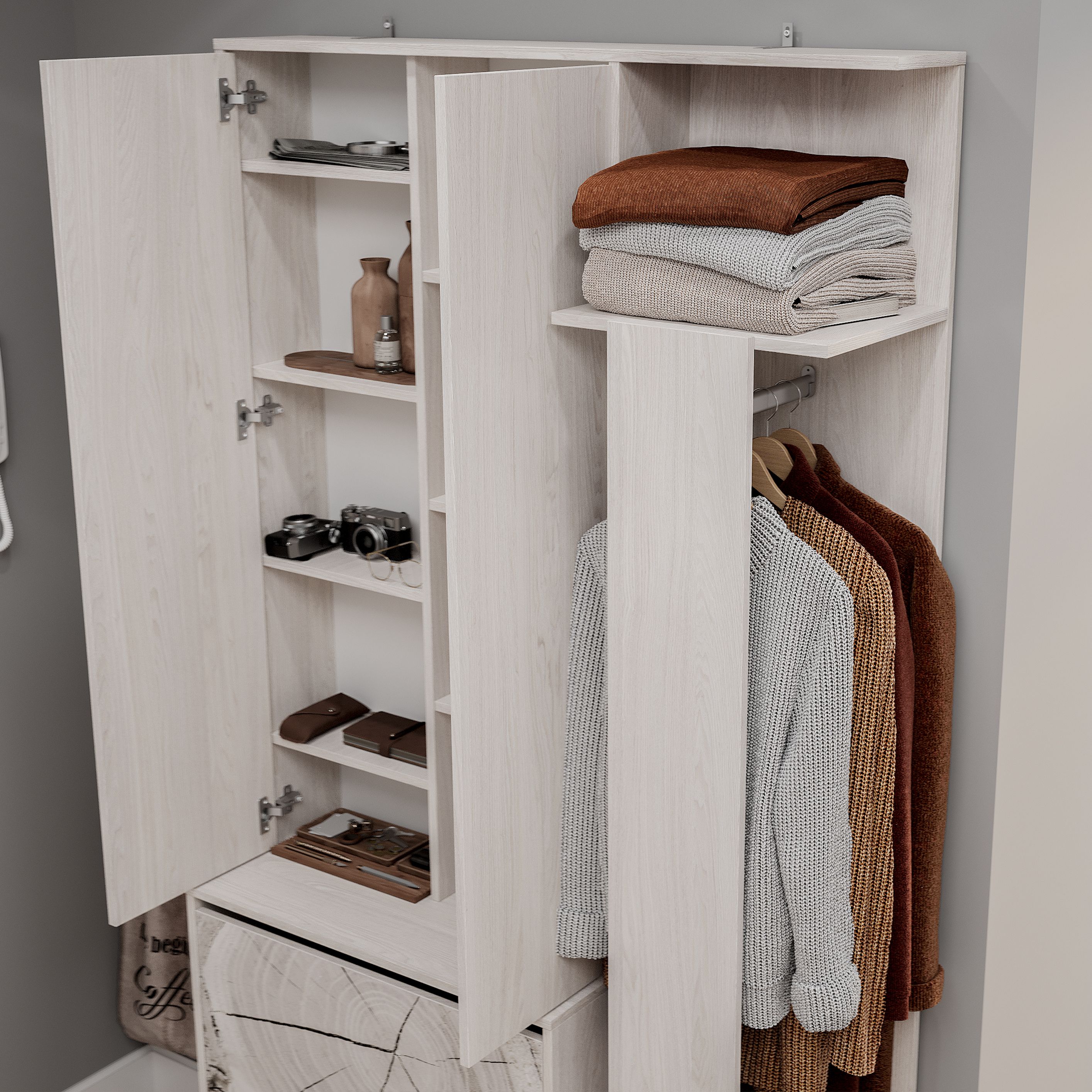 ПроизводительBTSНазначениев прихожуюМатериал корпусаЛДСПМатериал фасадаЛДСПС зеркаломестьШтанга для вешалокестьШирина1143 ммВысота2083 ммГлубина358 ммЦветБелый ясень