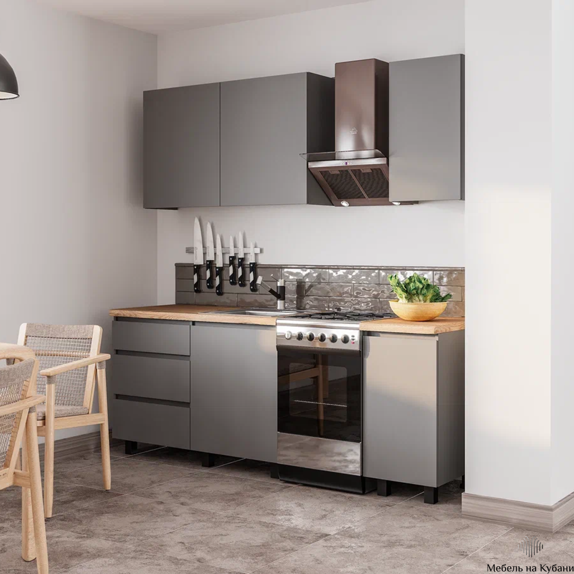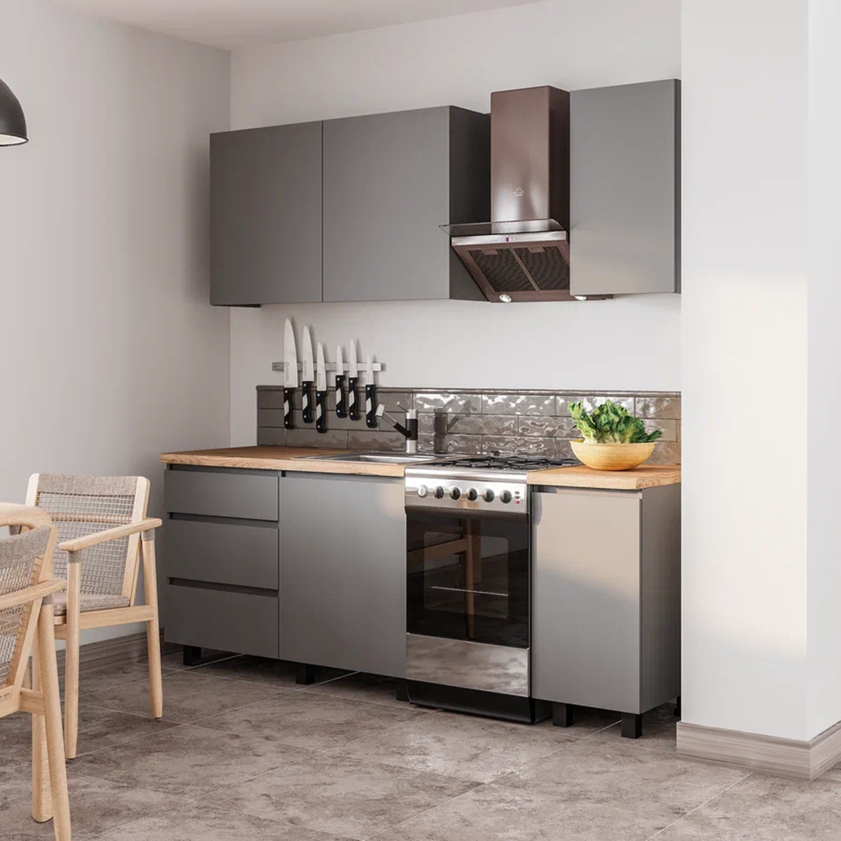 Прямые четкие линии, матовые фасады без декора и гармоничное сочетание всех блоков делает этот комплект универсальным.