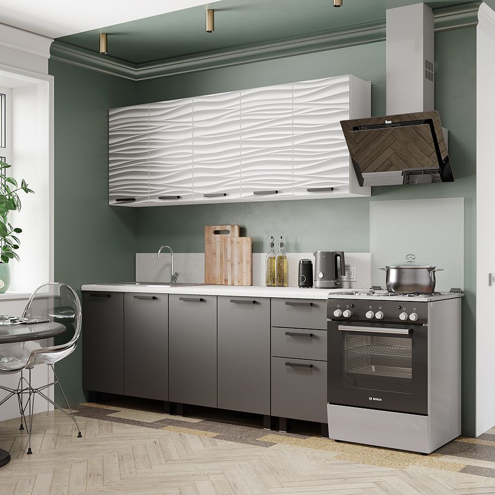 Габаритные размеры композиции верхних модулей: ширина: 2000 мм, высота: 720 мм, глубина: 304 мм.