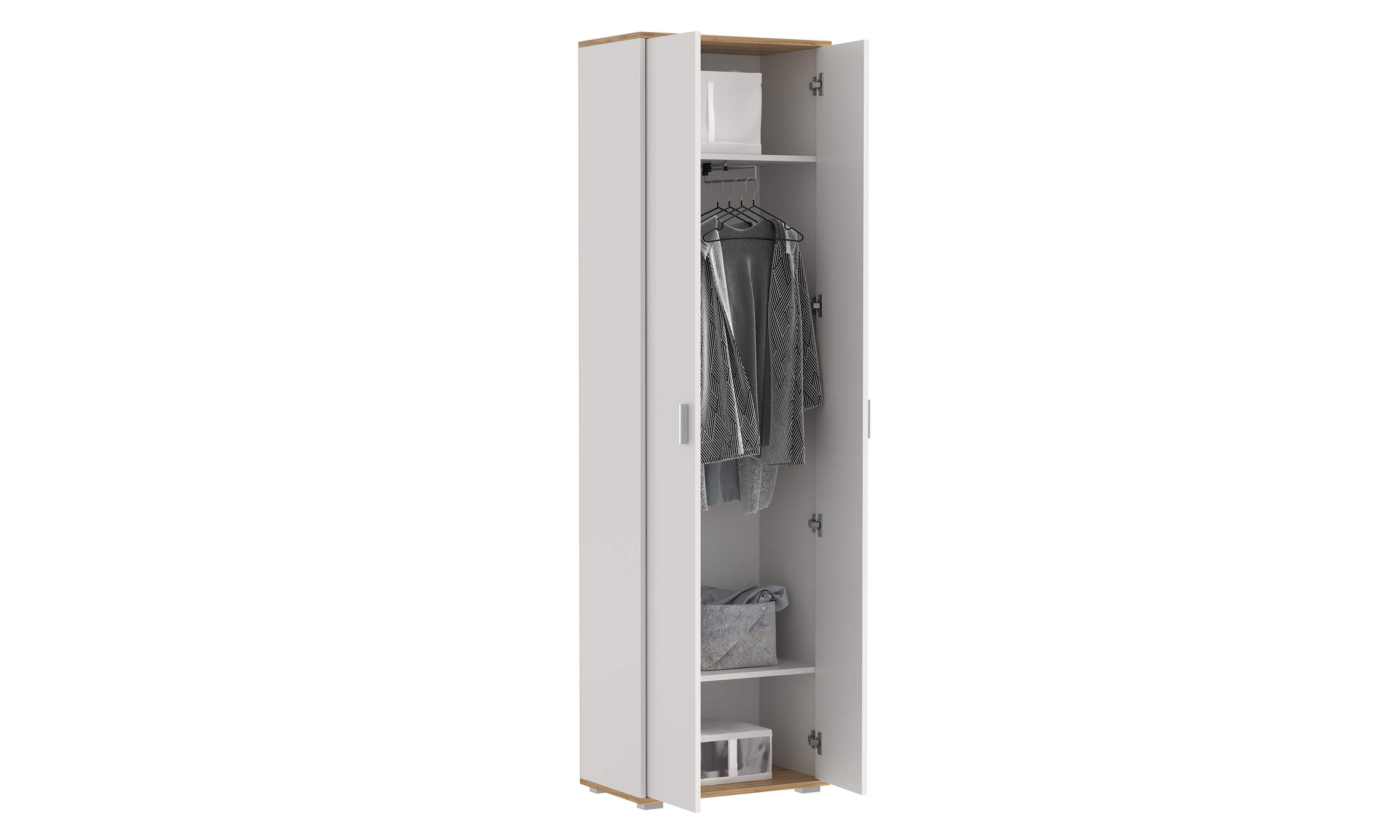 Шкаф 65.07 Антре (белый / дуб вотан / ДВПО: белый) совмещает благородную привлекательную эстетику с практичностью и хорошим функционалом. Продуманный дизайн уместно дополнит созданный интерьер и органично впишется в любое помещение.