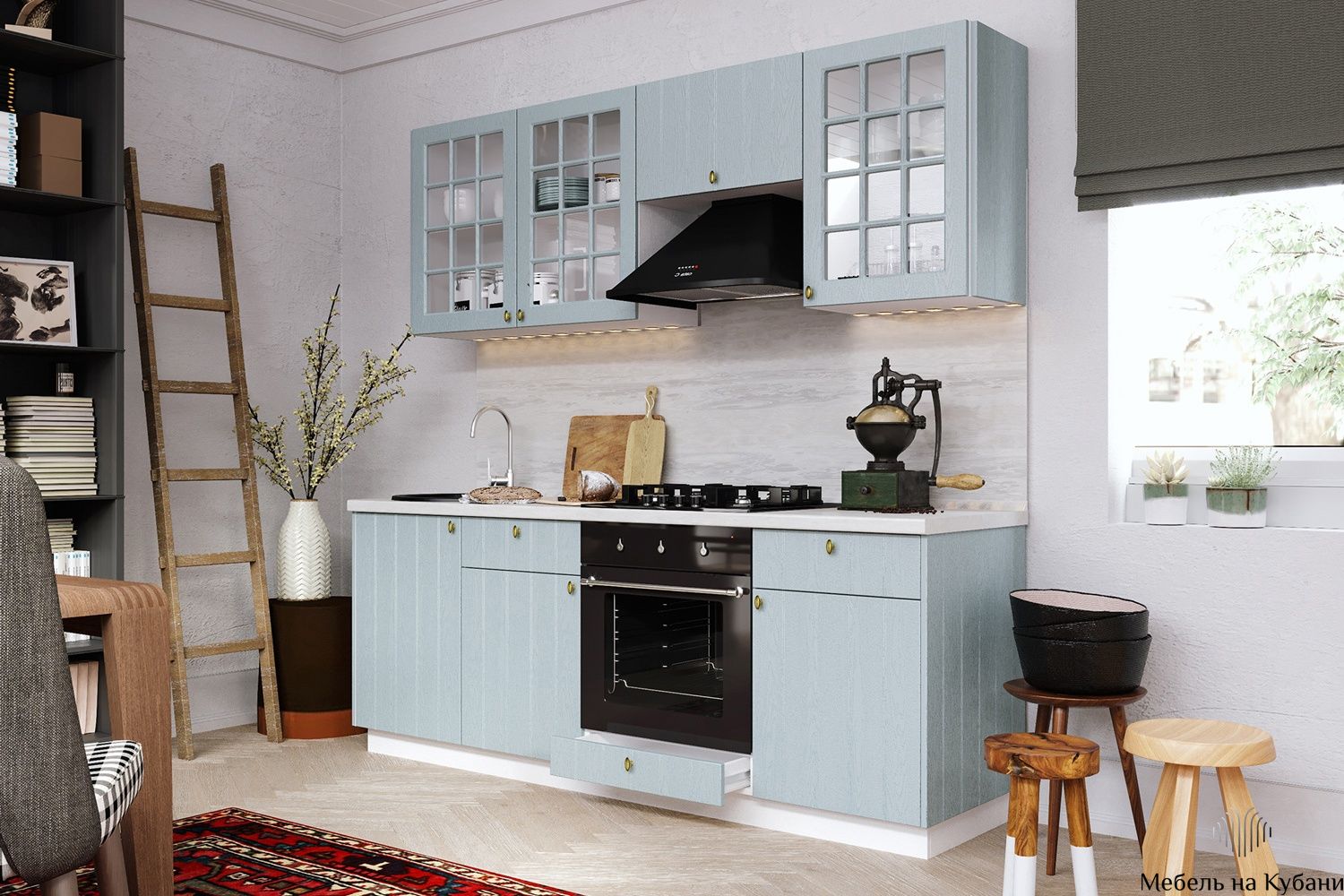 В-третьих, актуальный цвет фасада - голубой, прекрасно впишется в любой современный интерьер. Матовая текстура дерева добавит уюта и комфорта.