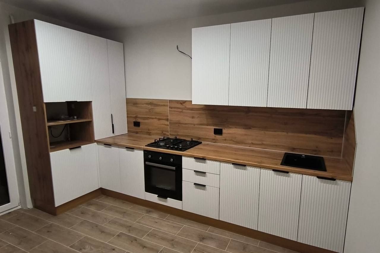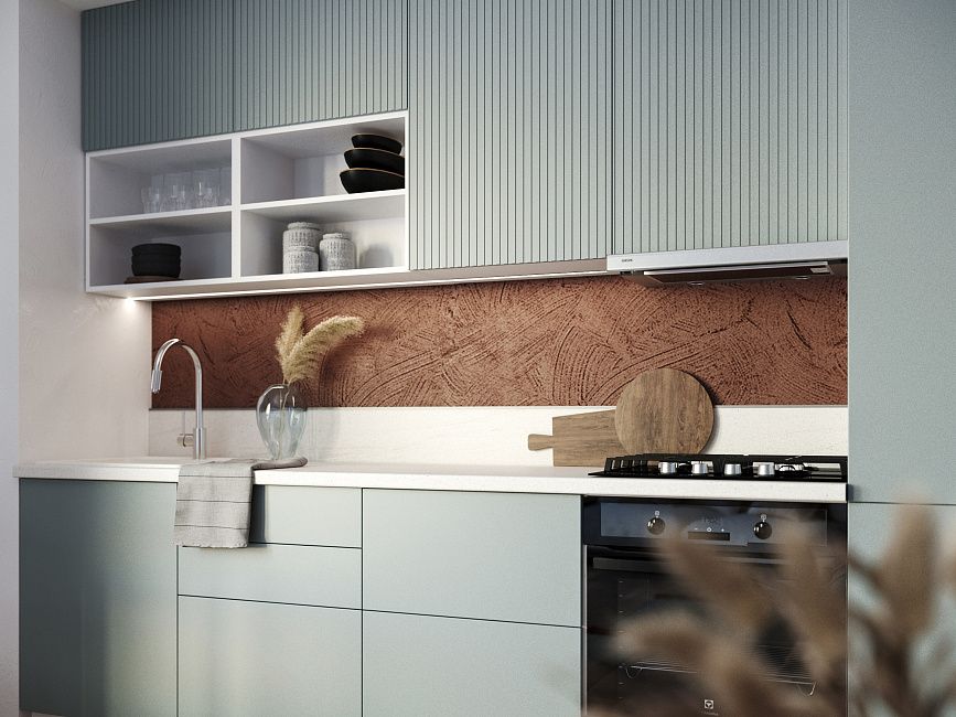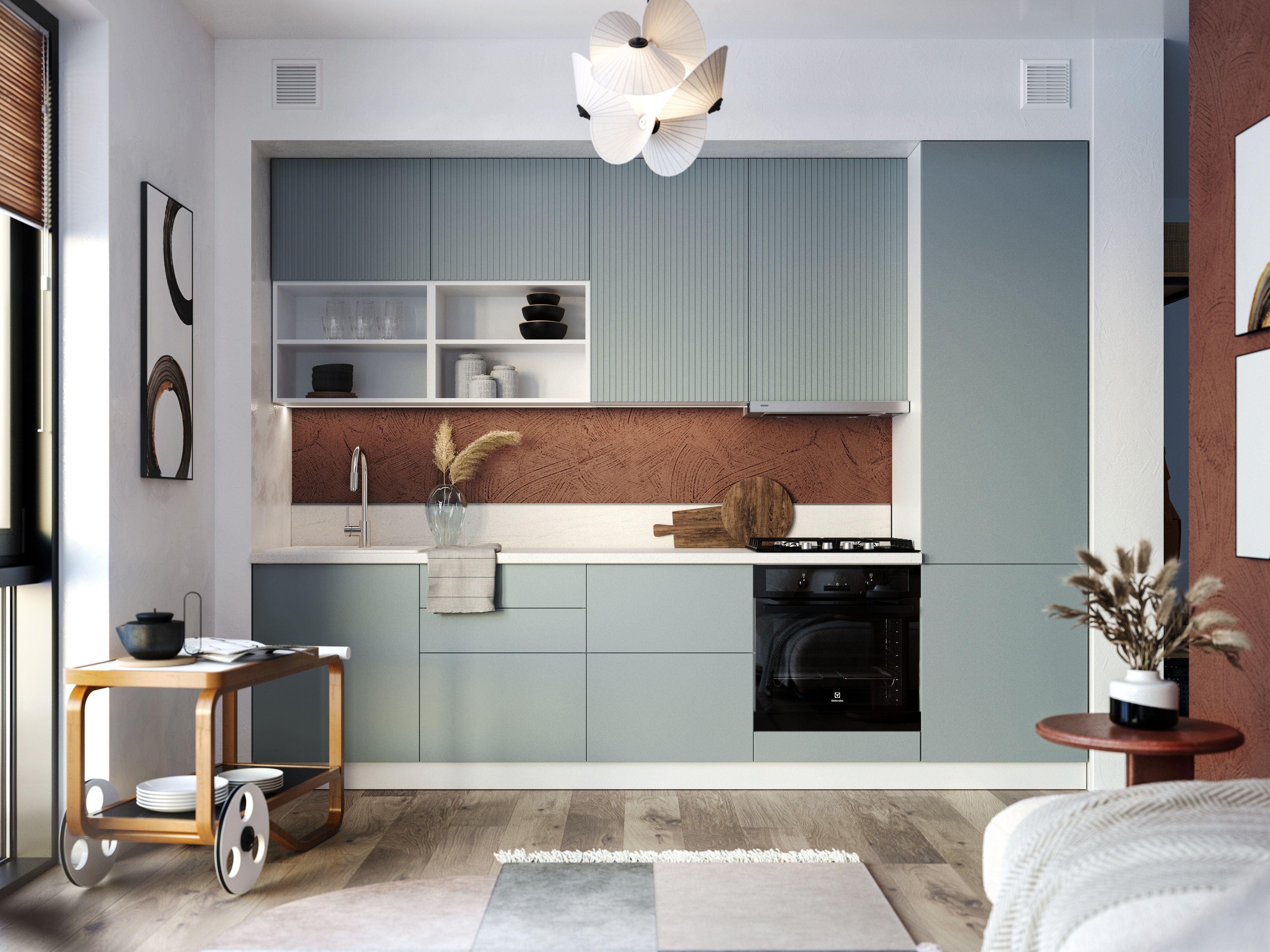ЯН - фасады с активной вертикальной фрезеровкой своим рифлением добавляют интерьеру динамику.
