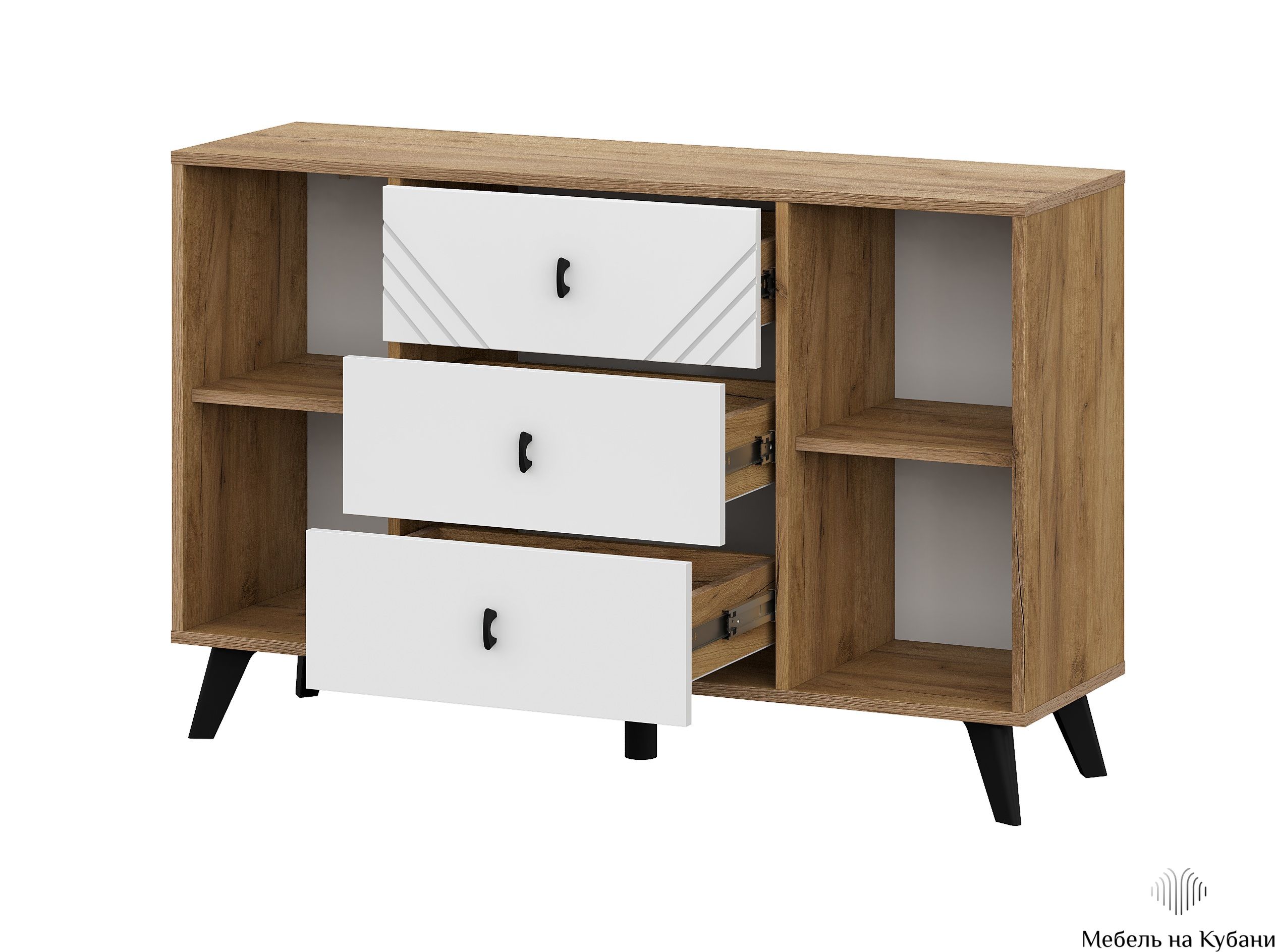Байкал Комод 3 ящика двухстворчатый Дуб Золотой/Белый матовый