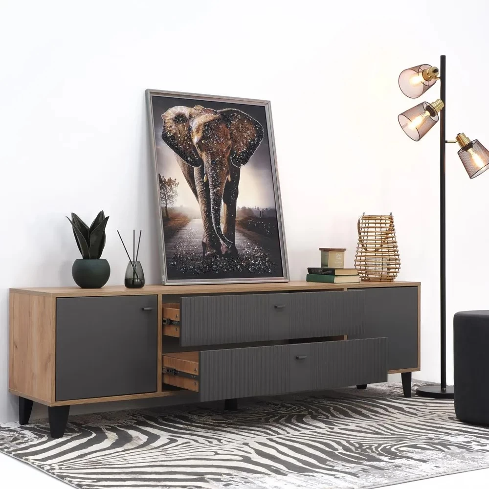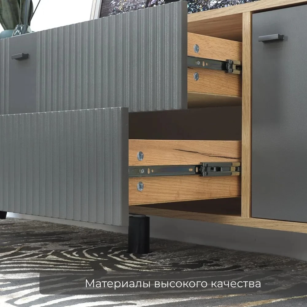 ПроизводительТэксНазначениепод телевизорШирина1802 ммВысота530 ммГлубина400 ммМатериал фасадаЛДСПЦветДуб крафт золотой/Карбон вулканНаправляющиеШариковыеВес33 кг