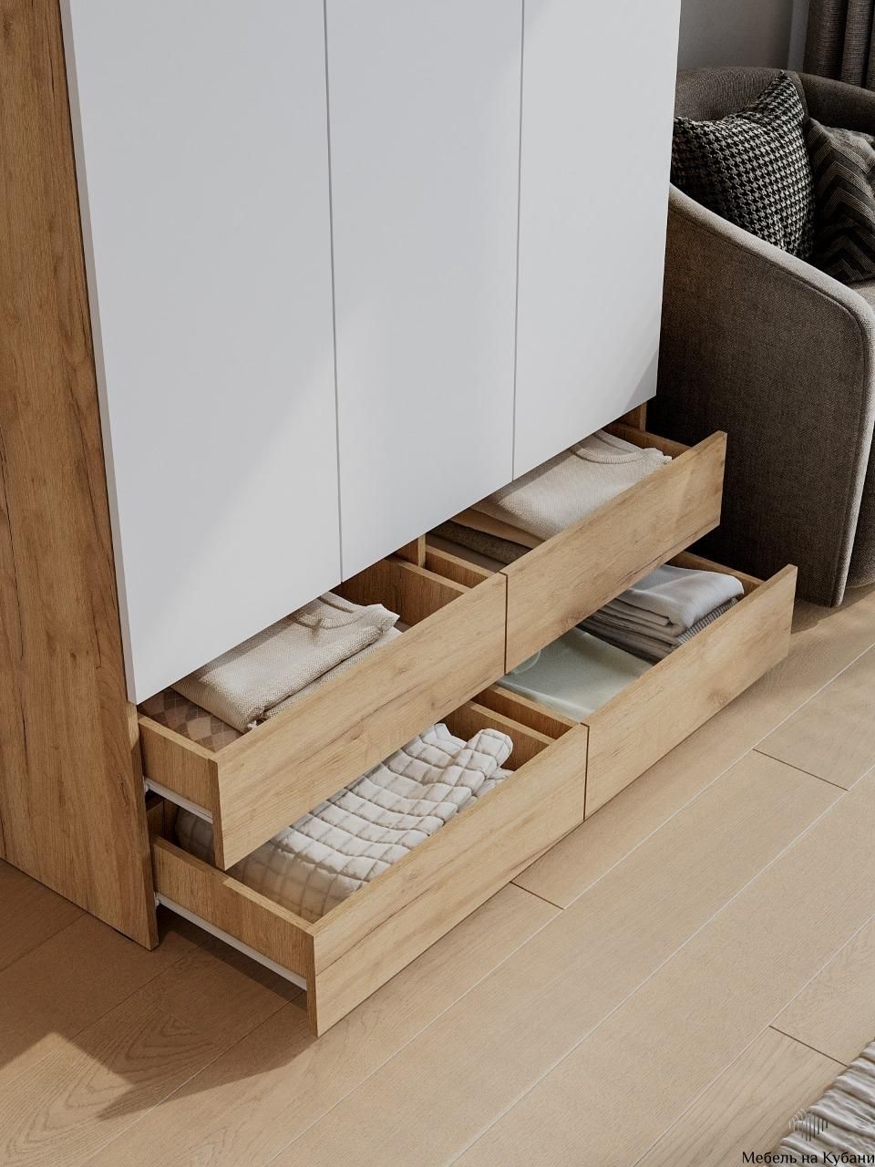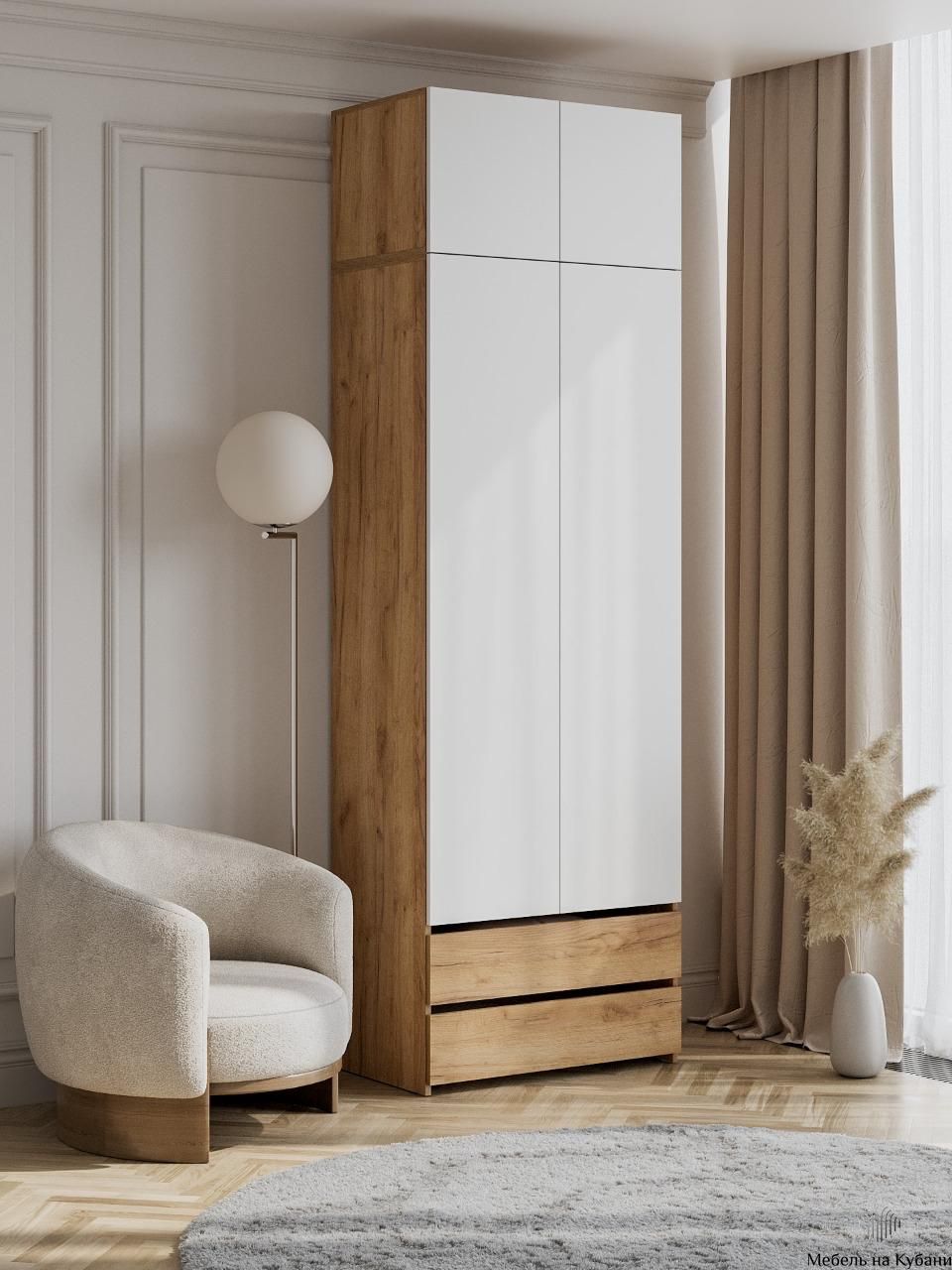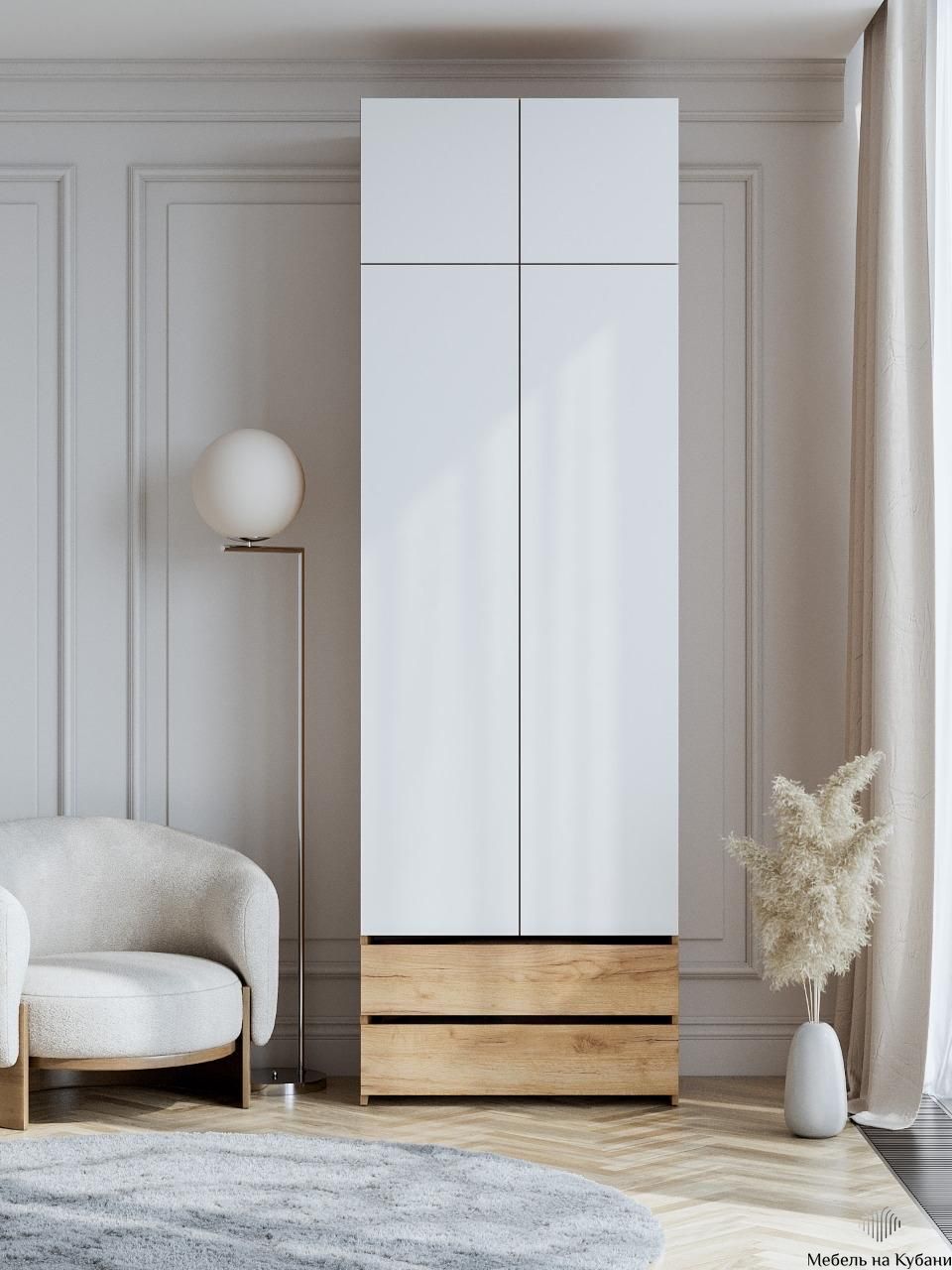 Абрау Шкаф двухстворчатый с ящиками и антресолью Дуб золотой/Белый