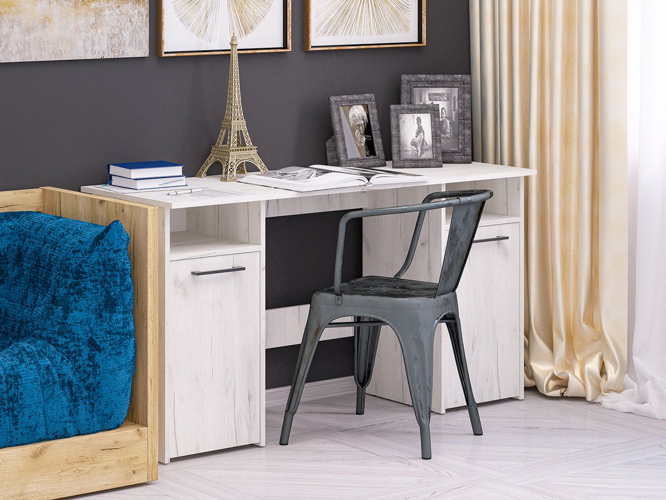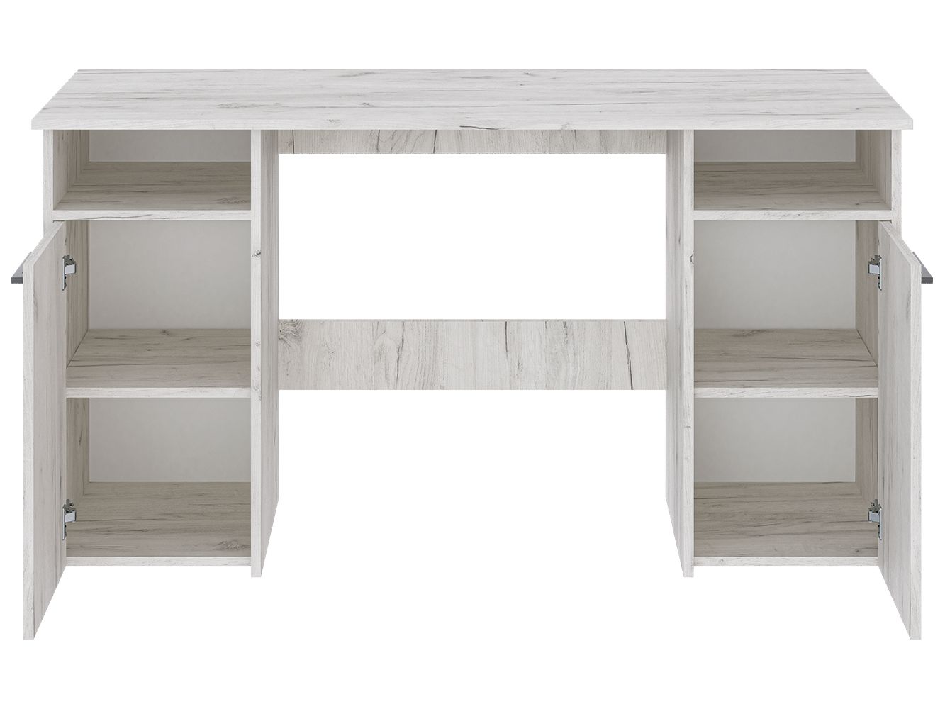 Стол двухтумбовый Фронда-9 представляет собой классический рабочий стол для офиса и дома. Базовая модель стола содержит по обоим краям стола 2 тумбы с распашными дверцами с полками внутри. Под столешницей, сверху тумб находятся открытые вместительные ниши.