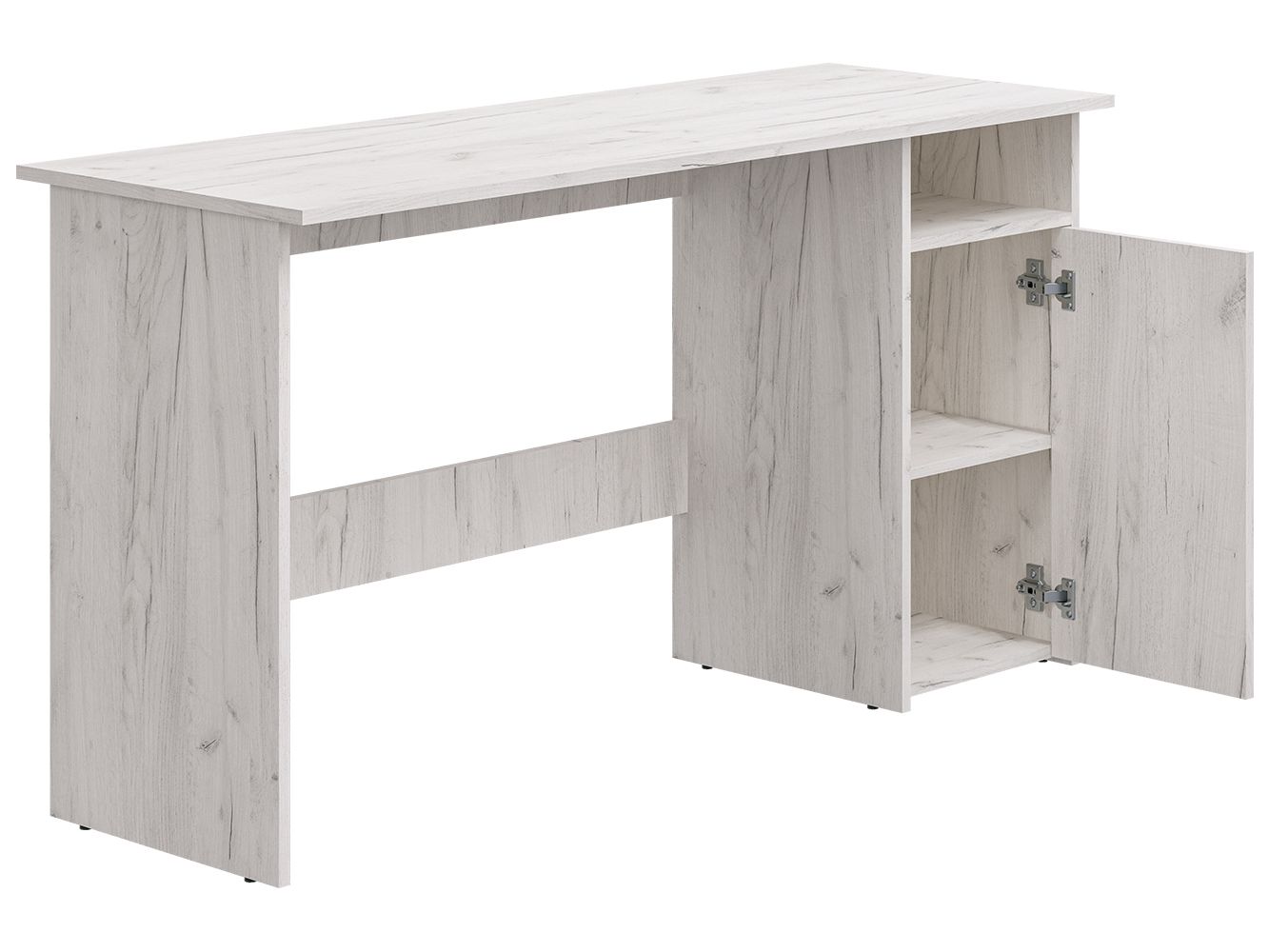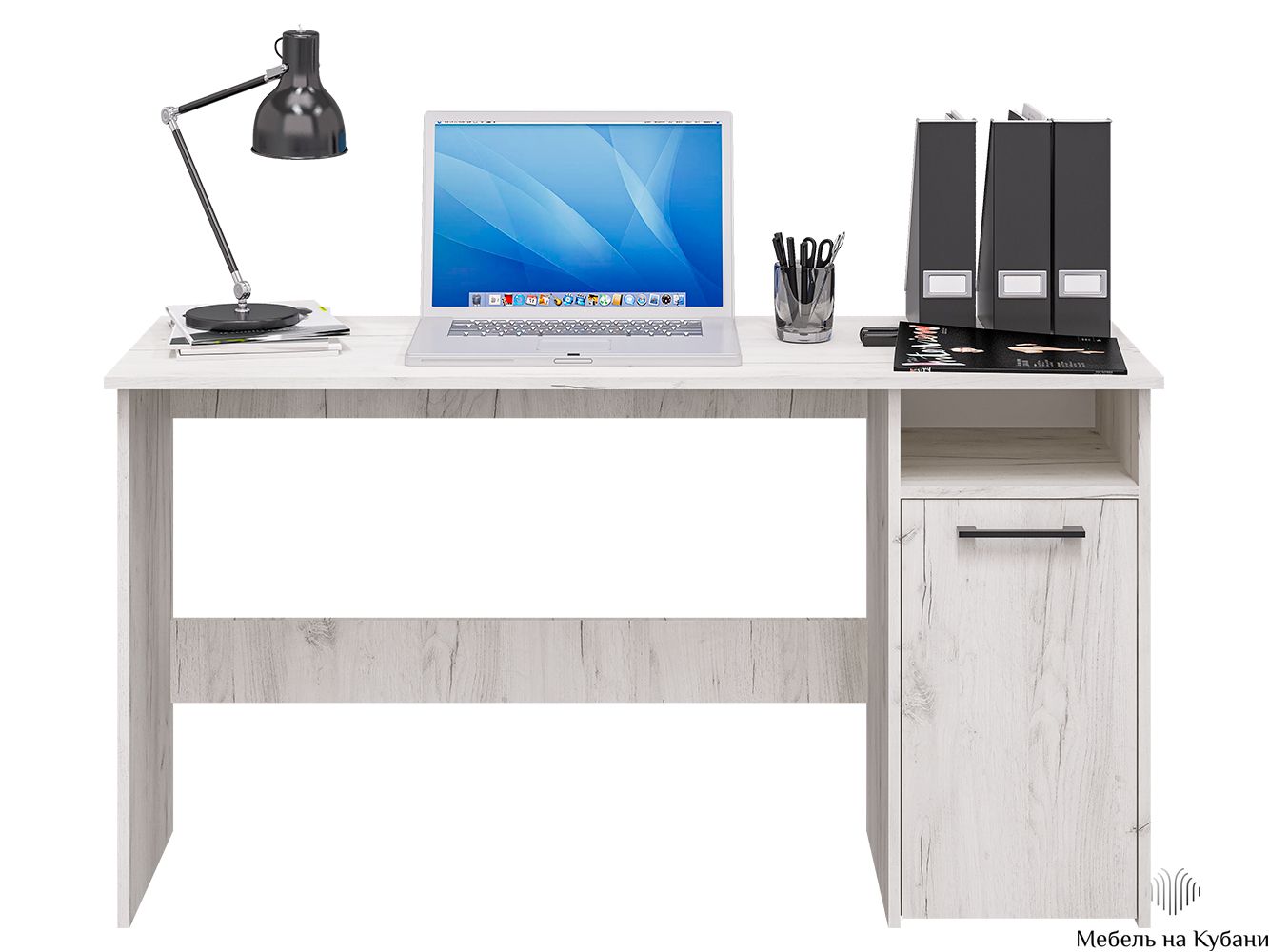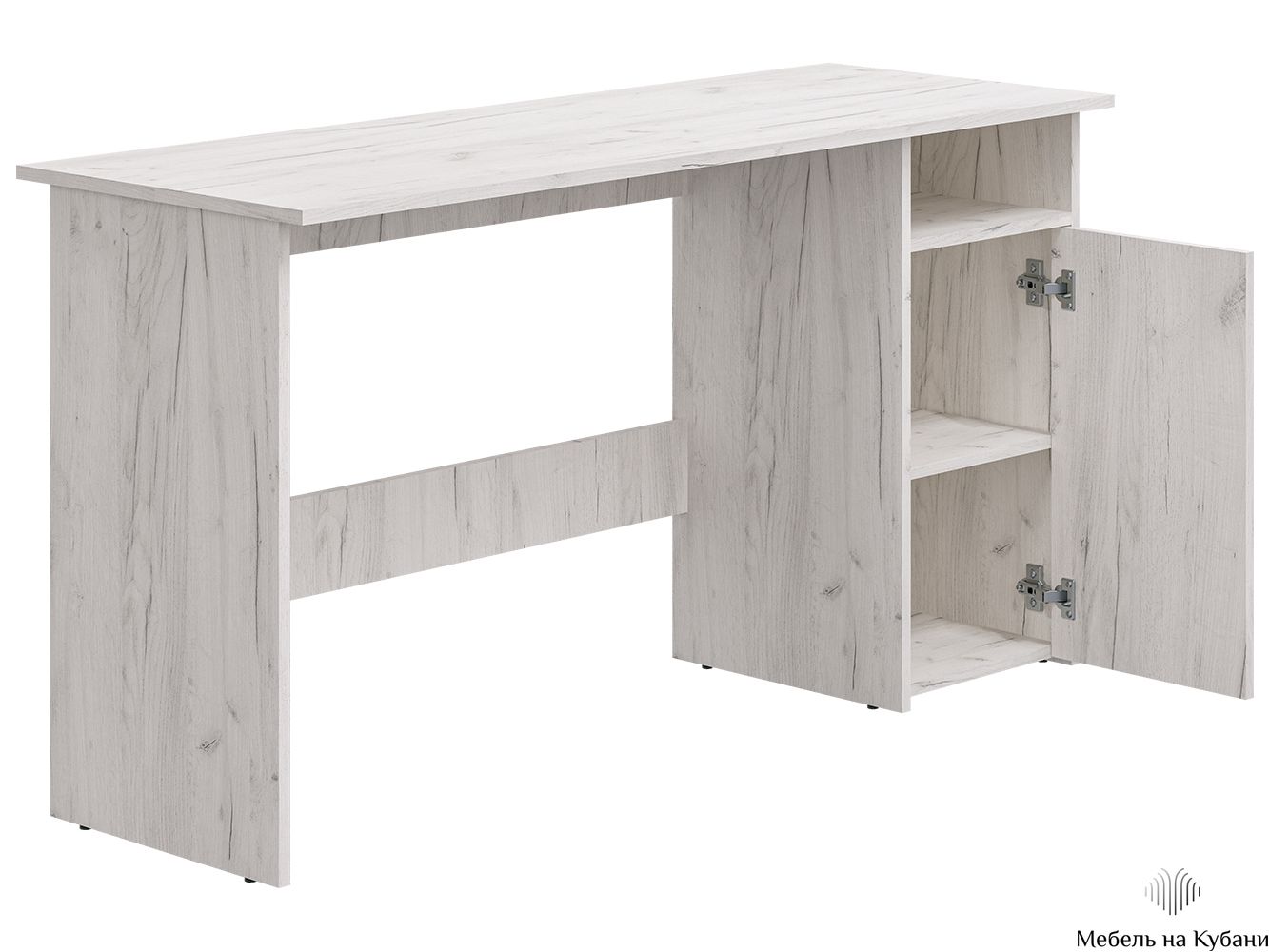 Лаконичная модель снабжена тумбой с двумя вместительными полками и открытой нишей и дополнительным модулем- выдвижными ящиками плавного хода на шариковых направляющих. Регулируемые опоры, компенсируют возможные неровности пола. Данная модель предусматривает универсальную сборку.