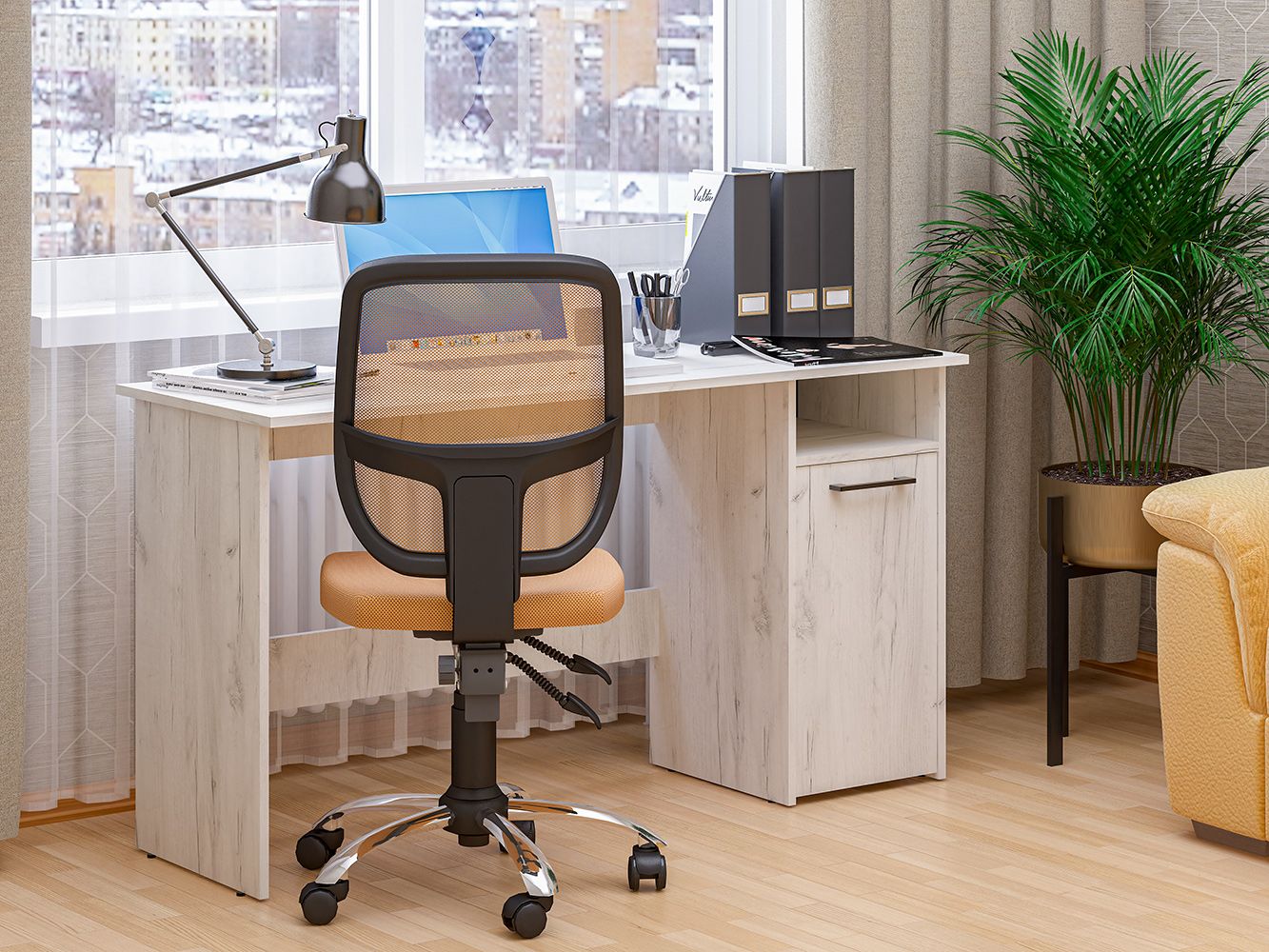 Фронда-7 стол письменный с тумбой Крафт светлый