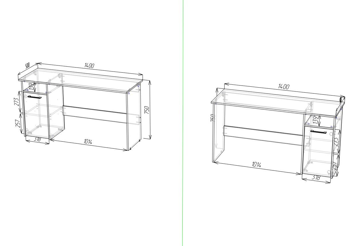 Габариты (ШхГхВ): 1400х500х750