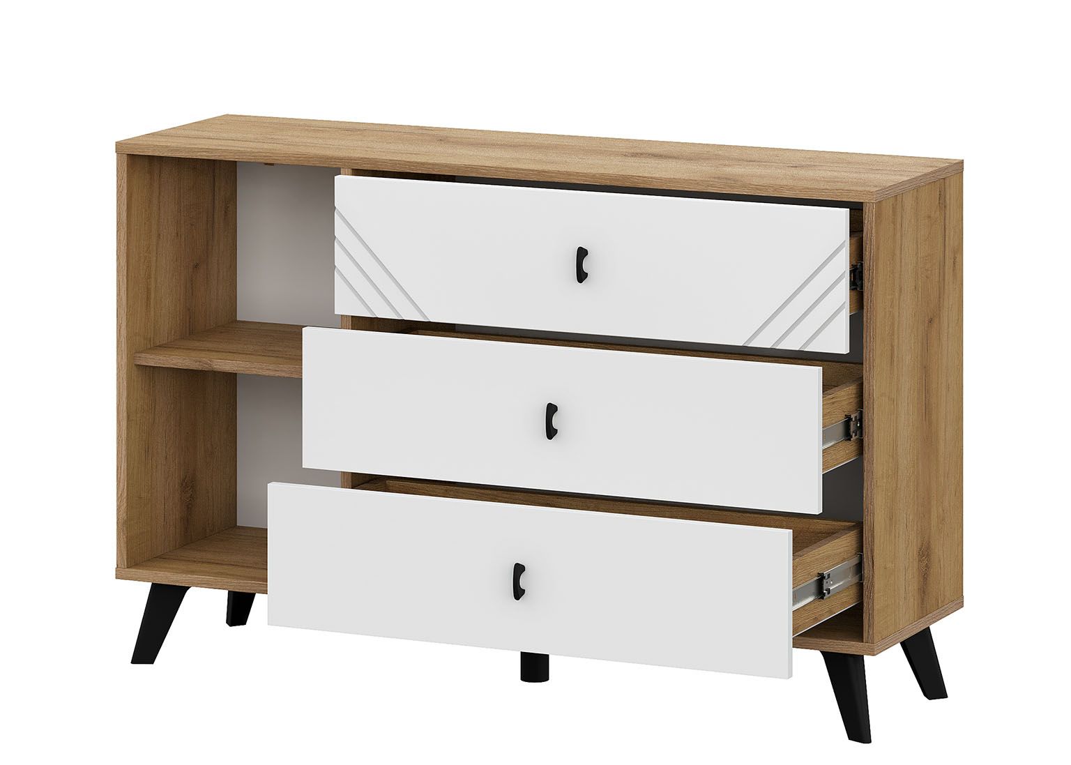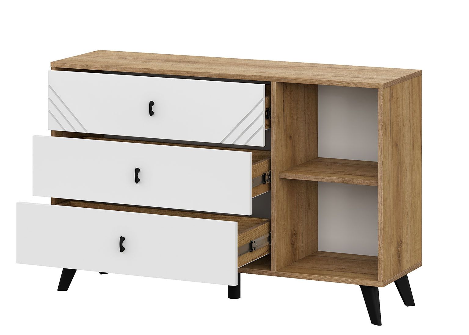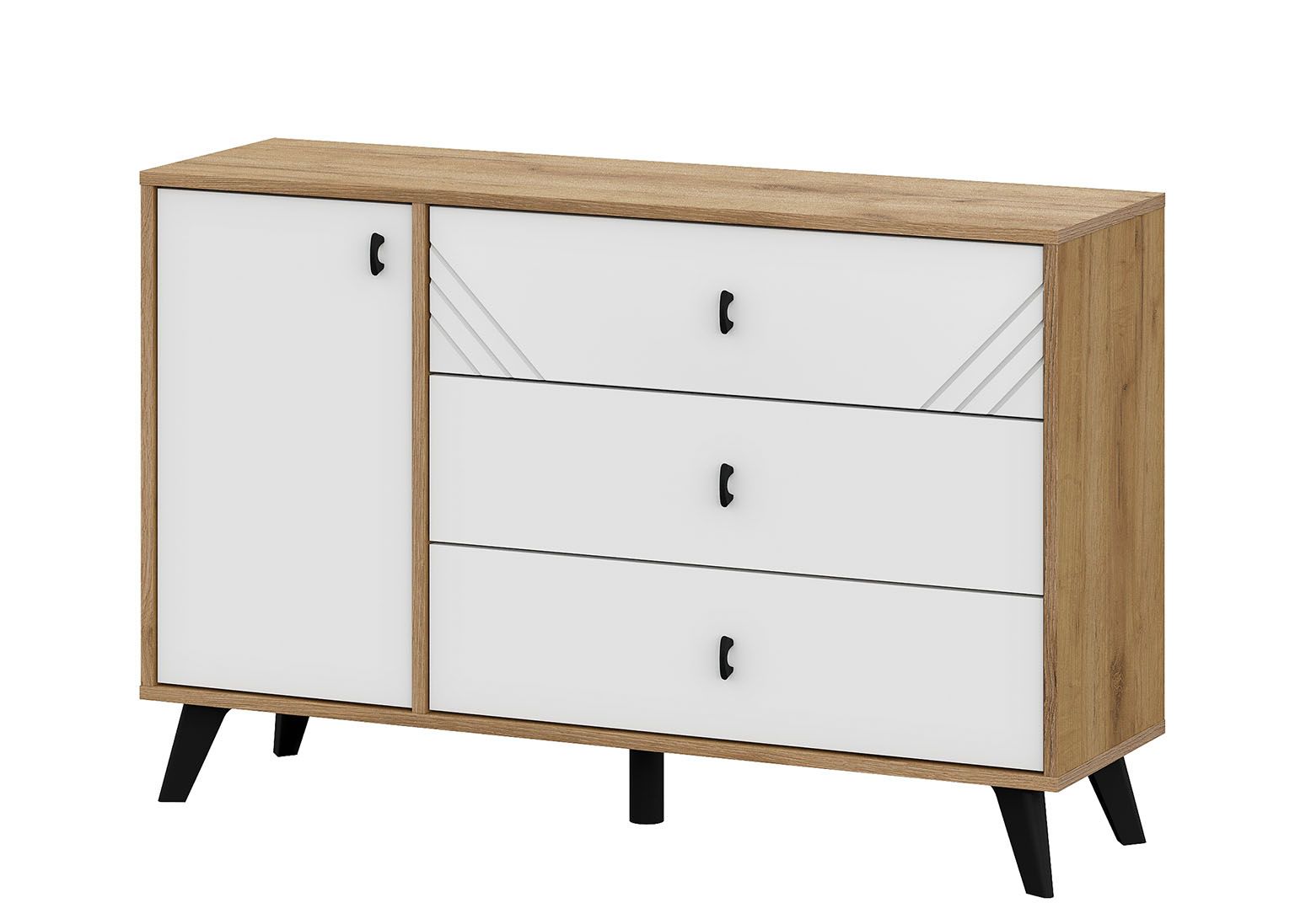 Байкал Комод 3 ящика со створкой Дуб Золотой/Белый матовый