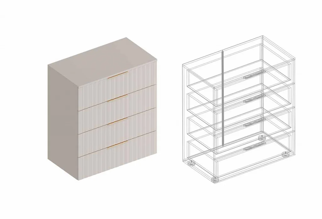 Комод с дизайнерскими 3Д фасадами сочетает в себе функциональность и эстетическую привлекательность, идеален для использования в различных помещениях, таких как спальня, детская комната гостиная или прихожая.