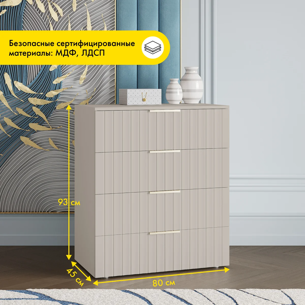 Число ящиков4Материал фасадаМДФМатериал корпусаЛДСПМодульныйестьШирина800 ммВысота930 ммГлубина450 ммЦветТефияНаправляющиеШариковые