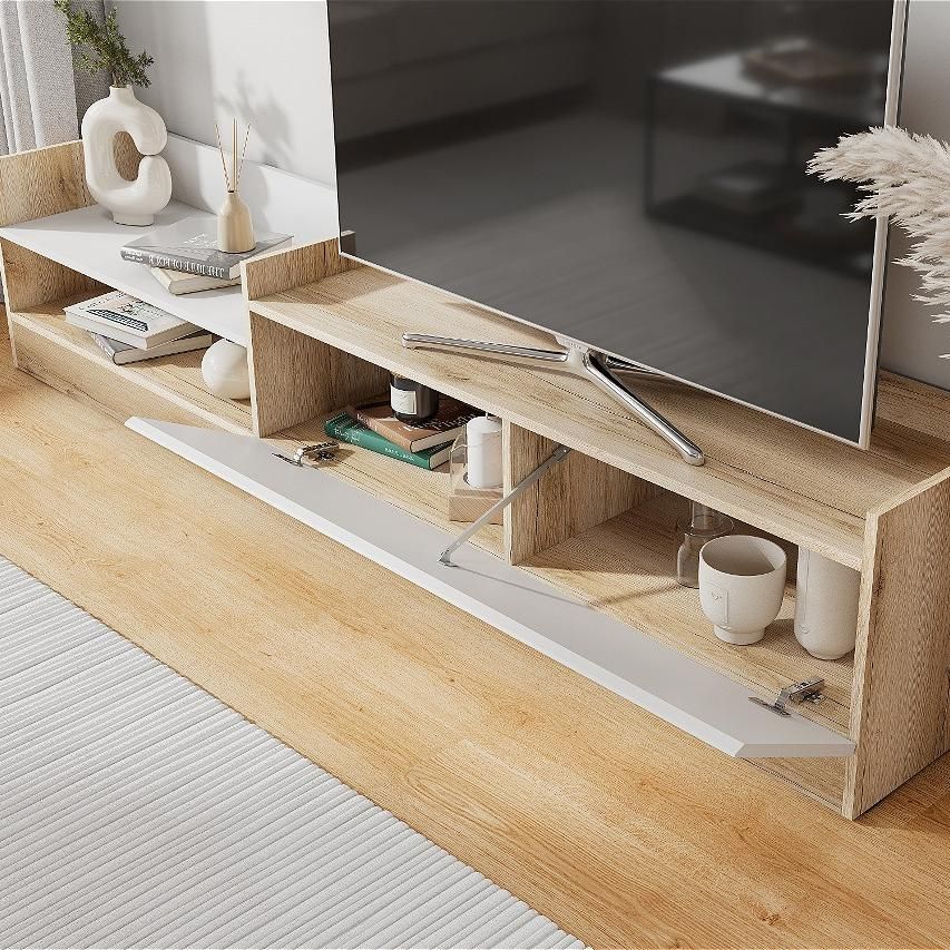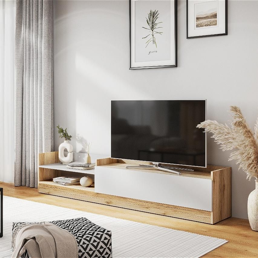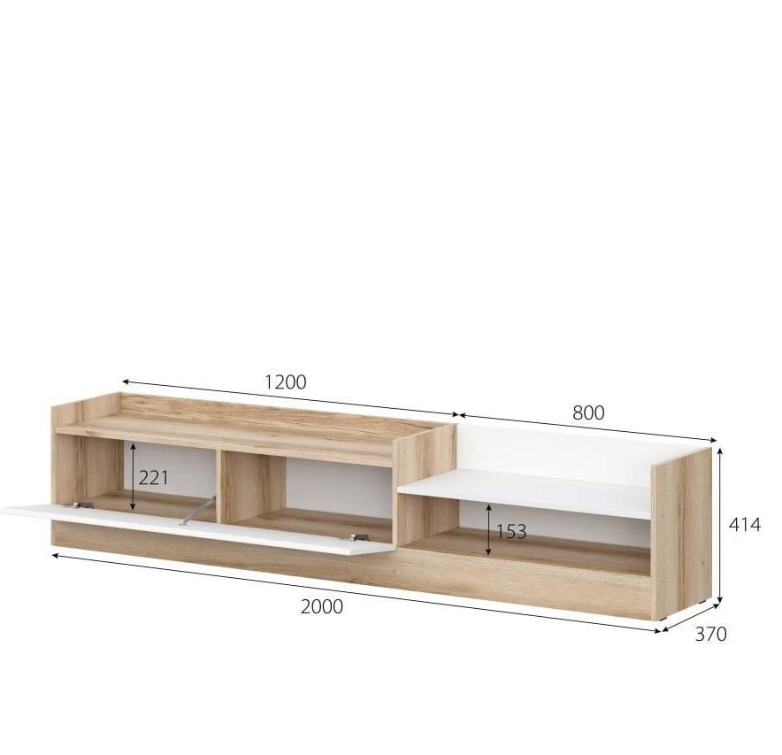 Назначениепод телевизорШирина2000 ммВысота414 ммГлубина370 ммМатериал фасадаЛДСПЦветДуб делано/Белый