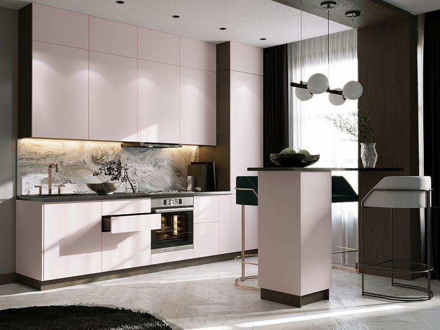 Кухня Валерия создана для тех, кто любит жизнь во всех её красках. Яркие цвета заряжают позитивом и влюбляют в себя с первого взгляда. Плавные линии фасада напоминают движение водной глади, создавая ощущение фактуры и лёгкости.