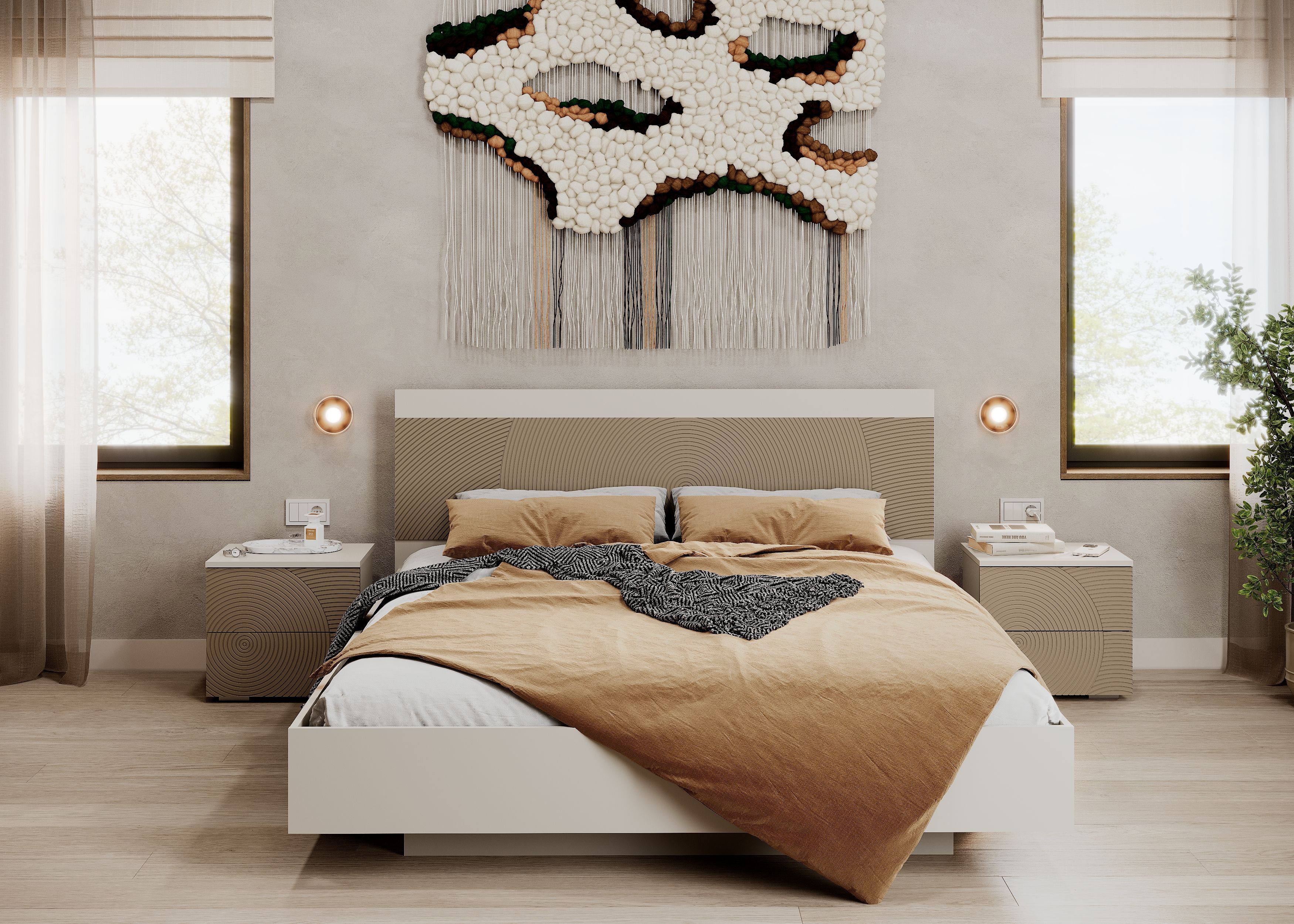 Цветовое решение: Корпус — «Кашемир», фасадная накладка на изголовье — матовая «Флан »