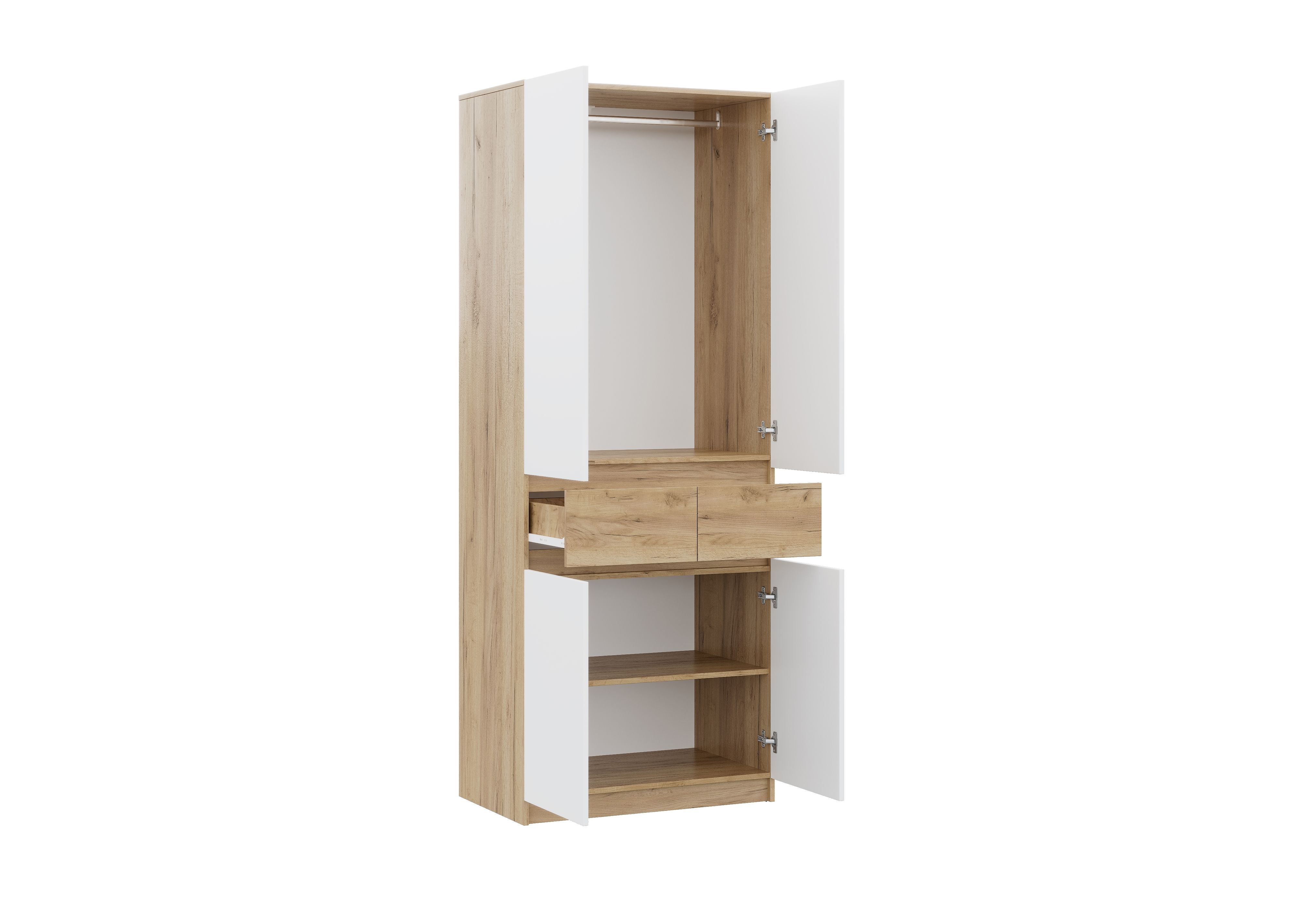 Материал корпусаЛДСПМатериал фасадаЛДСПЧисло дверей2ДверцыраспашныеШтанга для вешалокестьМодульныйестьШирина800 ммВысота2100 ммГлубина510 ммЦветДуб золотой/БелыйШирина800 мм