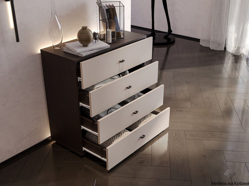 Комод с четырьмя выдвижными ящиками из серии Гиза СТМ, корпус Дуб Венге, фасады Меланж.