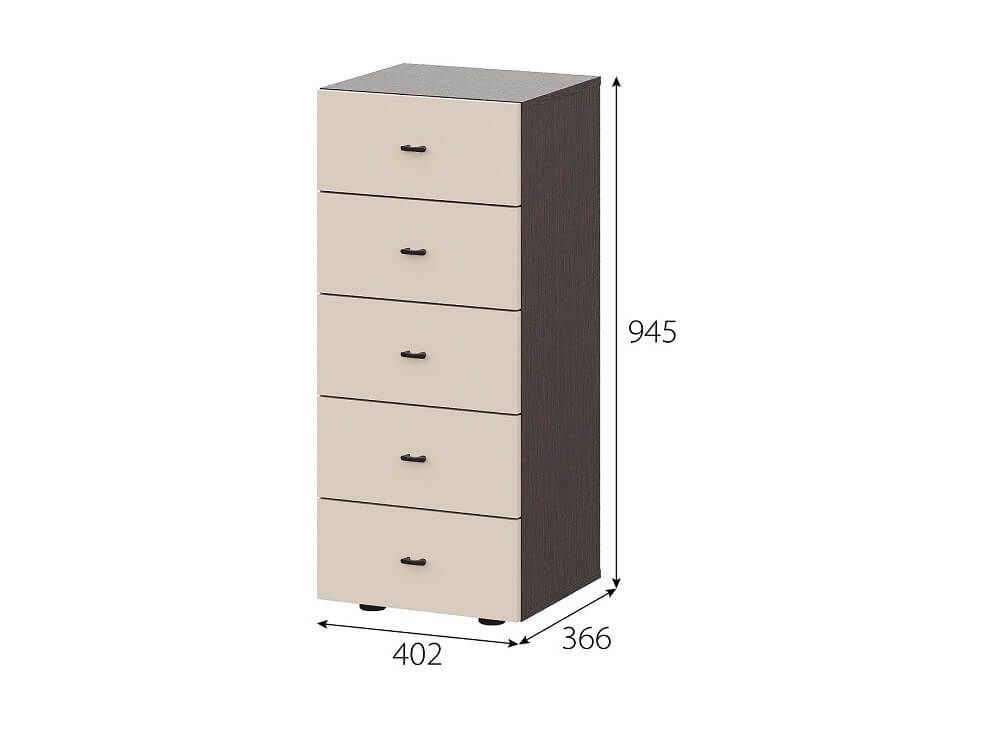 Комод с пятью ящиками, корпус Дуб Венге и фасады Меланж, серия модульной мебели Гиза СТМ.