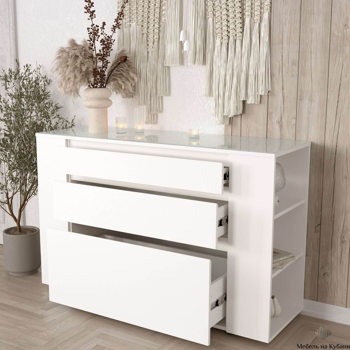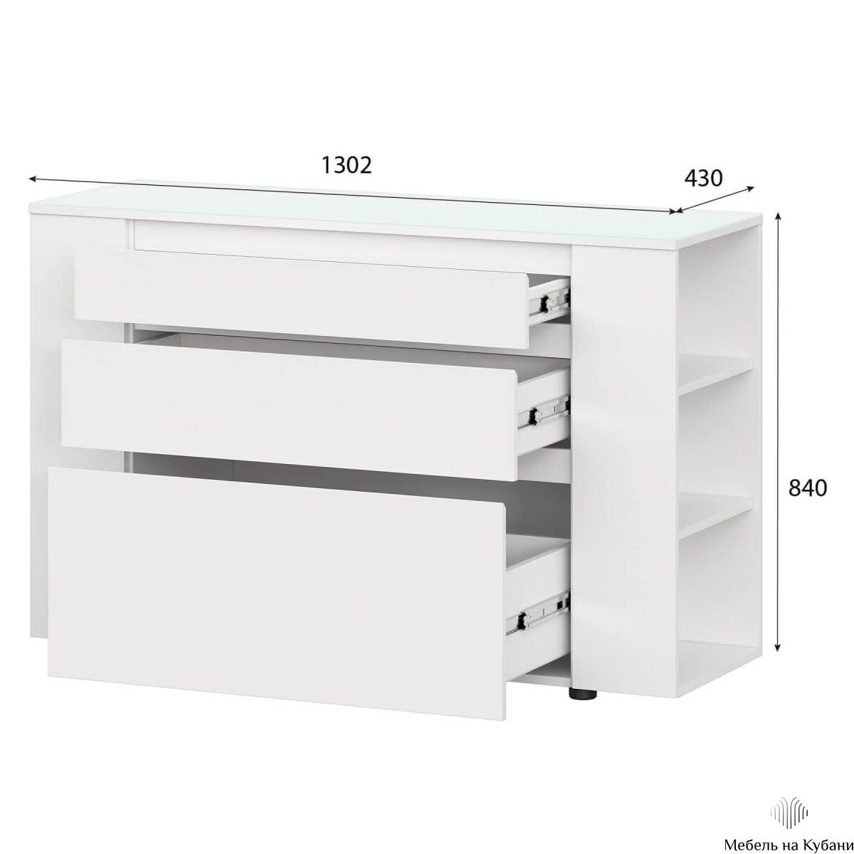 Число ящиков3Материал фасадаЛДСПМатериал корпусаЛДСПМодульныйестьШирина1302 ммВысота840 ммГлубина430 ммЦветБелыйНаправляющиеШариковые