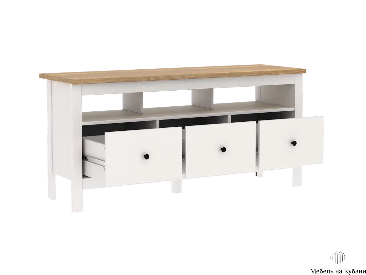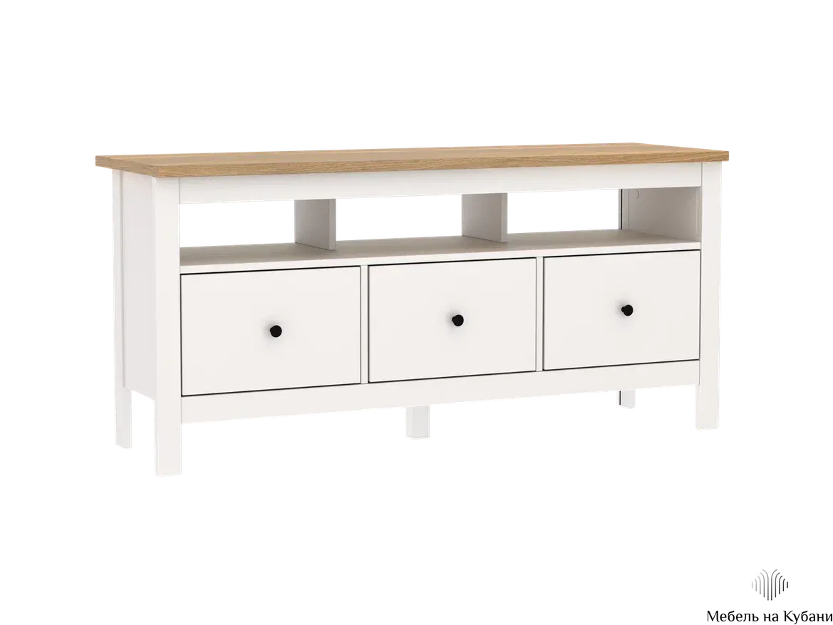 Почему выбирают Тумба САГА 3 ящика? Тумба САГА — это стильное и функциональное решение для организации медиацентра, которое идеально сочетает в себе практичность, элегантный дизайн и продуманные детали. Ее ключевая особенность — открытая полка без задней стенки, разработанная специально для размещения игровых консолей, таких как Play Station, или другой техники, требующей эффективной вентиляции.