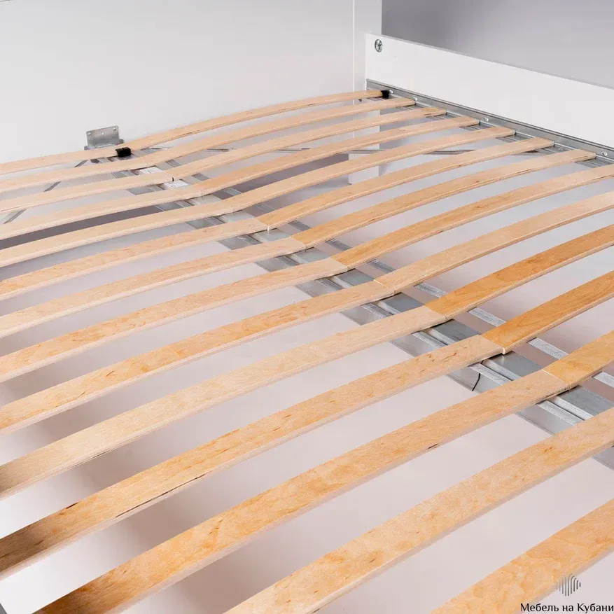 Реечное дно надежно держится на стальной перекладине, а опорные элементы изготовлены из прочного МДФ, что делает конструкцию устойчивой и износостойкой. Благодаря этому, вы можете быть уверены в прочности кровати и ее способности служить долгие годы.