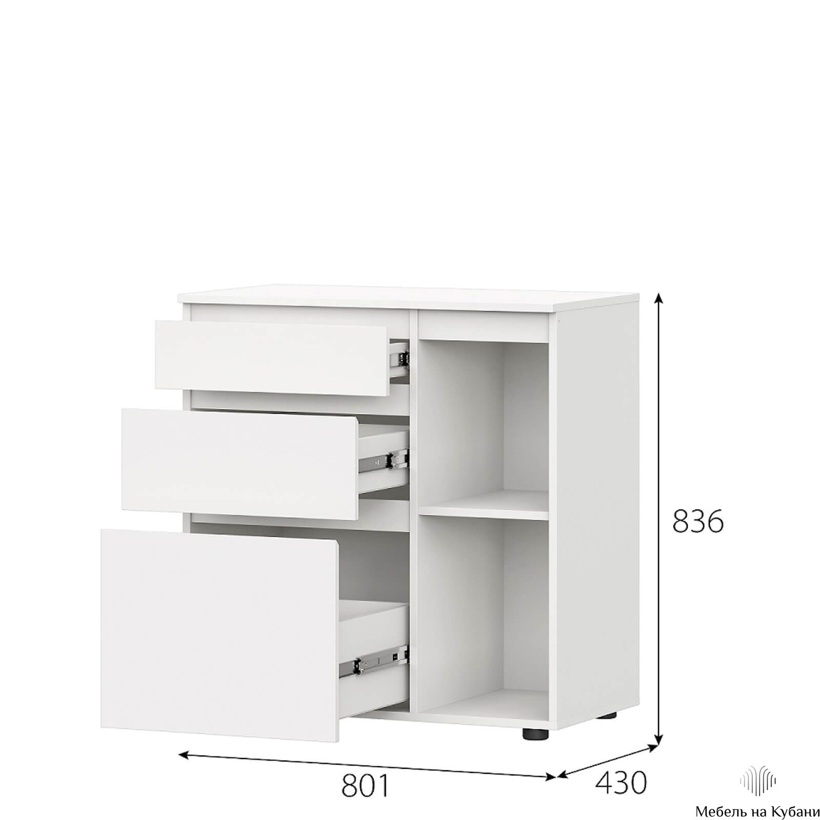 Число ящиков3Материал фасадаЛДСПМатериал корпусаЛДСПМодульныйестьС дверцейестьШирина801 ммВысота836 ммГлубина430 ммЦветБелыйНаправляющиеШариковые
